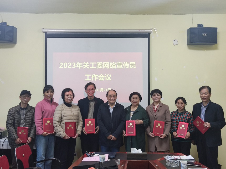 会议首先举行了新一届关工委网宣员聘任仪式。离退休工作处党委副书记、校关工委副秘书长徐爱兰宣读了聘任名单,共33名关工委网宣员受聘。校关工委常务副主任徐建军为2023年聘任关工委网宣员颁发了聘书。