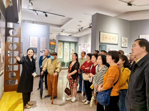 馆内常设展区以“生平”“艺术”“传承”三大主题串联,陈列着齐白石不同时期的书画真迹、篆刻作品及生活器物。从早年木雕花工的精细刻刀,到晚年的“衰年变法”之作。在讲解员的细致讲解下,老同志们详细地了解了齐白石的生平经历、从艺脉络、书画篆刻作品的风格以及齐白石在中国画坛上的独特地位。展览注重挖掘阐释以齐白石作为画坛巨匠身上所蕴含的天人合一、亲仁善邻等中华优秀传统文化的重要元素,力求以展览语言讲好中国故事。在展览现场,老同志们感受作者深情、汲取翰墨芬芳,时而驻足凝视,仔细品味作品中的笔墨韵味;时而相互交流,分享对作品的理解和感受。90岁的杨伯勋老书记在《虾趣图》《山水十二条屏》等传世佳作前久久驻足品鉴,情不自禁感慨道:"白石老人衰年变法的创新精神,值得我们在场的每一位学习!"