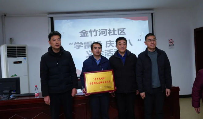 开福区卫生健康局党组书记、局长晏强对湘雅医院专家团一行的到来表示欢迎并与医院关工委常务副主任肖平共同向捞刀河街道金竹河社区授予了“青年文明号”学雷锋志愿服务示范点牌匾。